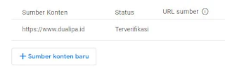 Semua konten yang terkait dengan publikasi Anda di Google Berita harus terverifikasi. Masukan Alamat URL blog yang sudah terverifikasi di google console.